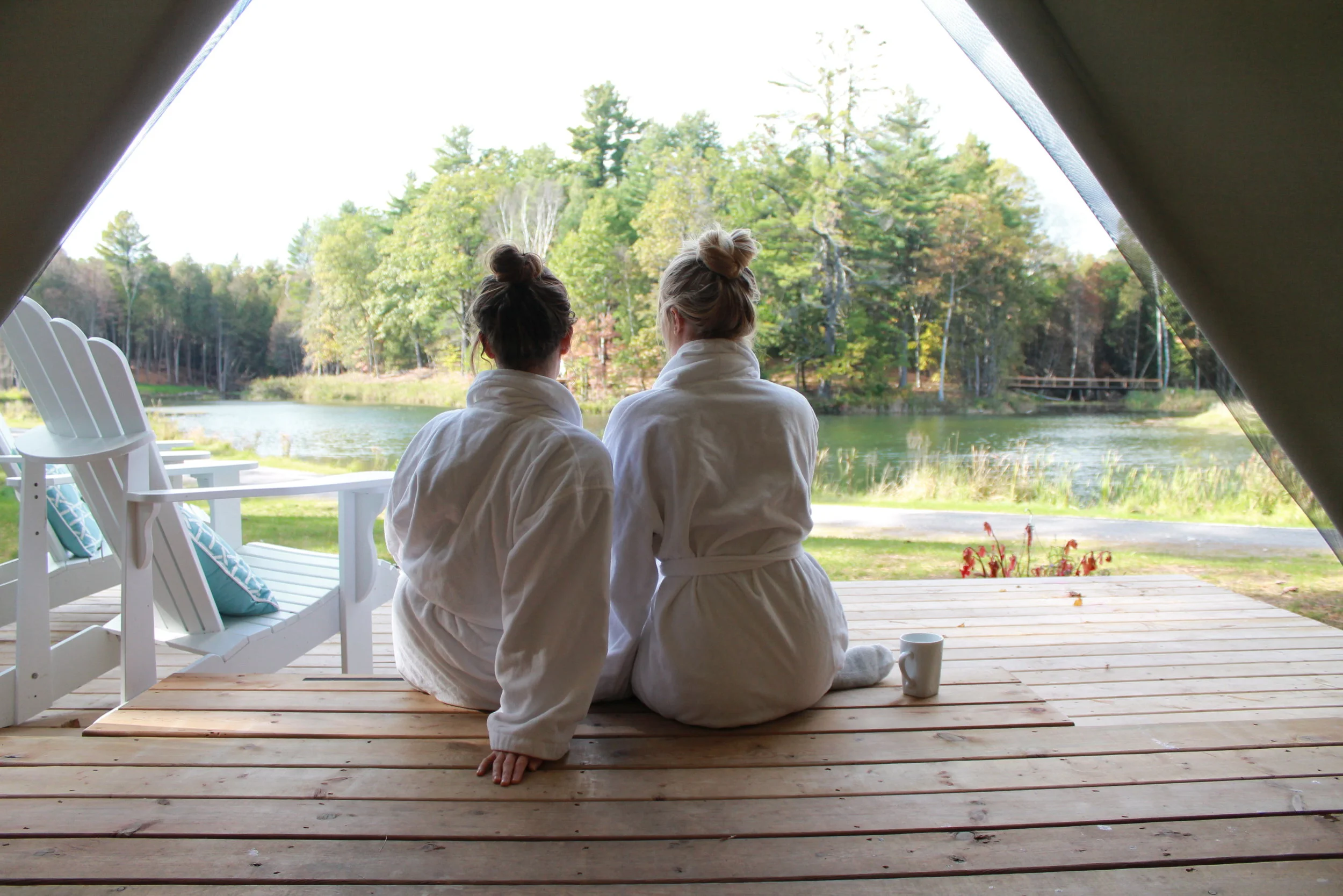 Please be mindful of the fact that you are still vacationing in the great outdoors. In the cooler months be sure to pack extra warm clothing and plan appropriately, as our tents are not heated and can get chilly in the evenings. If you are looking for a heated accommodation then you will want to book the Whisper Cabin or Chalet.